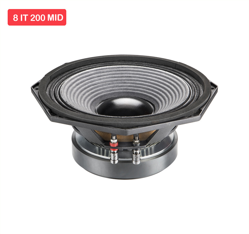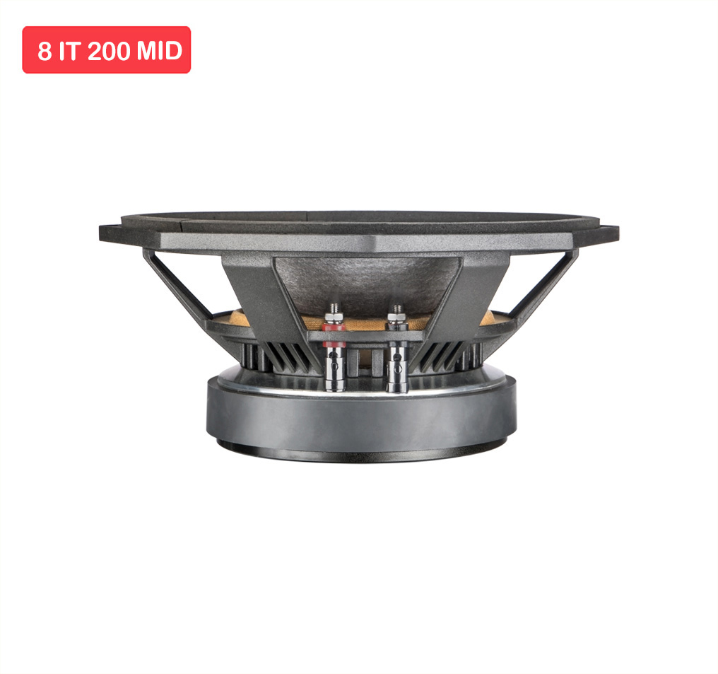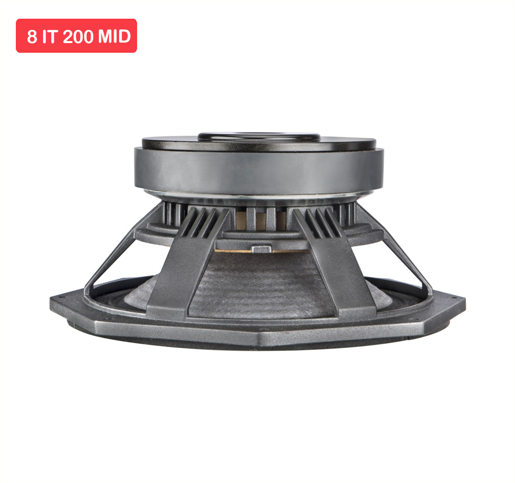 8IT 200 MID is a transducer which reproduces mid frequencies linearly and has excellent tonal quality. It has been designed specially for Line Array speaker system. Suitable for Bass Reflex / Ported Enclosure.