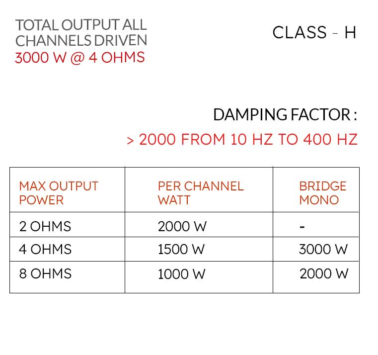 • Dampong Factor : > 2000 FROM 10 HZ TO 400 HZ
