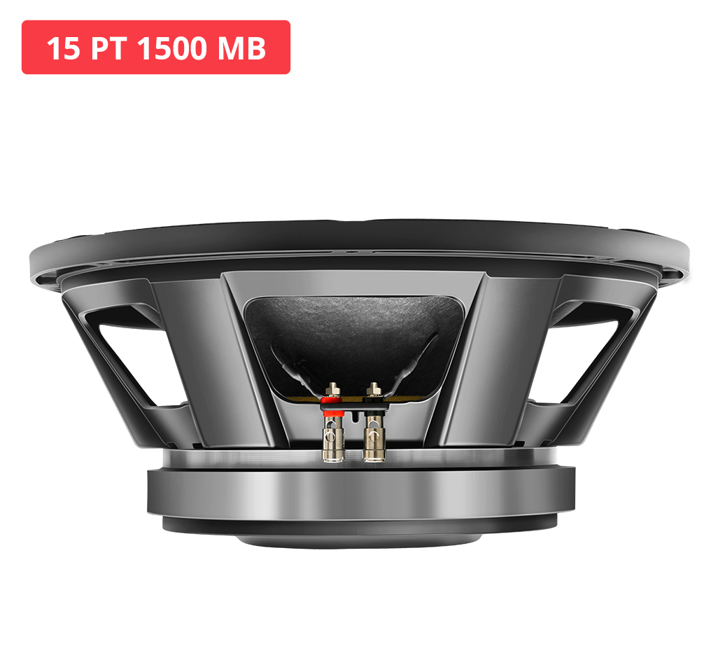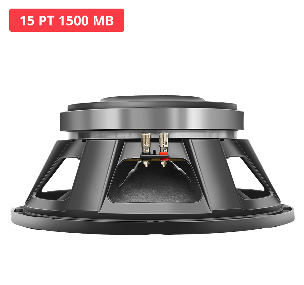 15 PT 1500 MB is a high-powered 15- inch mid-bass loudspeaker equipped with a robust 4.5-inch voice coil, designed to deliver impactful punch, wide dynamic range, and exceptional thermal handling. Developed using advanced Klippel Analyzer Systems and precision-tuned through CLIO measurement systems, this transducer combines sheer power with refined acoustic detail, making it the perfect choice for large-scale sound reinforcement applications.