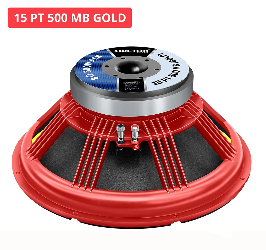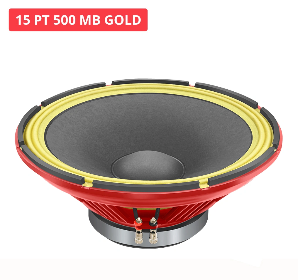 15 PT 500 GOLD is an effi cient version of 15 PT 500 MB with extended MID and more prominent Bass in 500 Watt AES Power in 77mm Voice Coil.