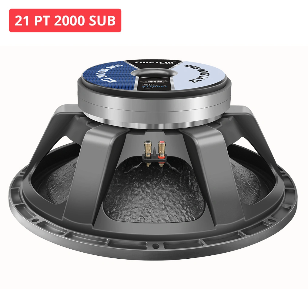 A very powerful 21" Subwoofer with 140 mm(5.5 in) voice coil & Dual magnet produces actual 2000 wt AES power. Better than any other similar product available in Indian market. It can reproduce low frequency from 32 Hz. Excellent transducer for outdoor performance, DJ & Competition. Ideal for Horn loaded , Bass reflex cabinets.